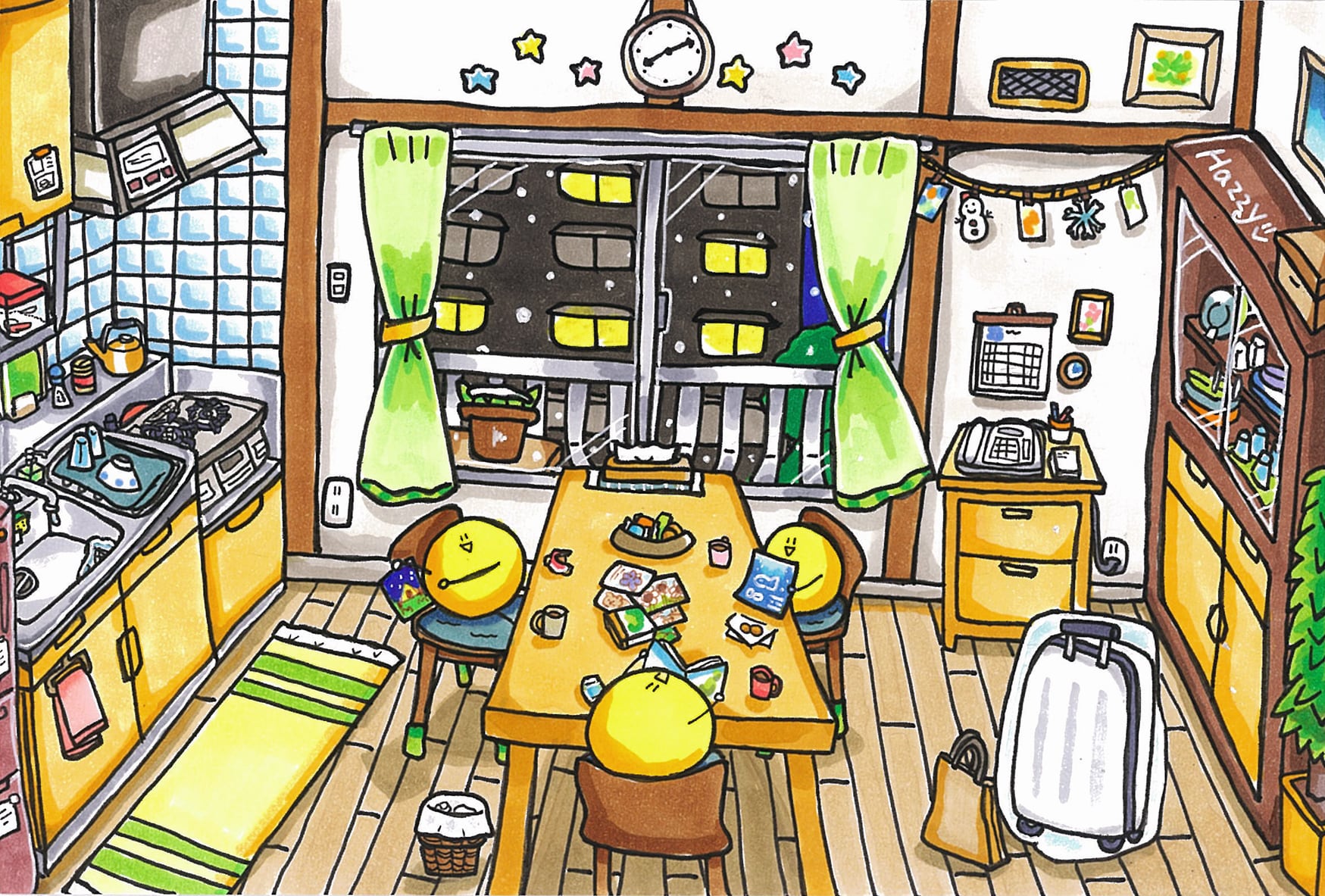 ・圧倒的な描き込み: ほのぼのとした雰囲気の中に、驚くほど細部まで書き込まれた世界が広がっています。背景の小物や、旅先の看板、家族の表情など、見るたびに「あ、こんなところに!」という新しい発見があります。